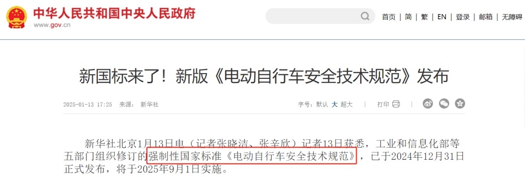按照旧标准生产的车辆允许销售至2025年11月30日,2025年12月1日之后,所有在售电动自行车产品均必须符合新标准规定。