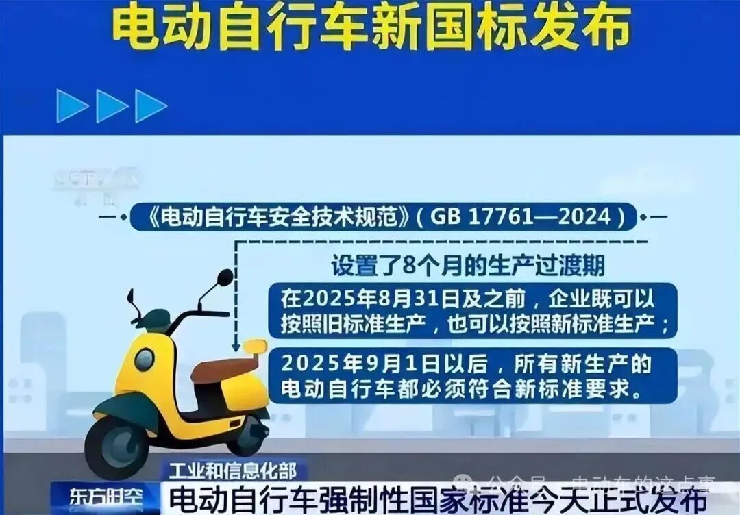 2025年8月31日前,企业既可以按照旧标准生产,也可以按照新标准生产;2025年9月1日以后,所有新生产的电动自行车都必须符合新标准要求。